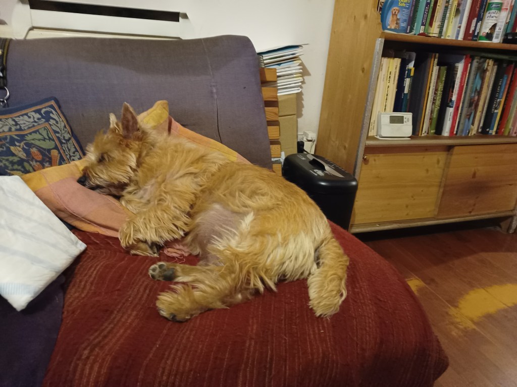 Up earlier than yesterday (even after a very late night), this coming week is going to be weird and wonderful for me, Dr Dragon and the furry Dragon (aka Hamish the Terrier) as Dr Dragon is in an Am Dram every night (and also early afternoon Saturday), and then Sunday we head to Wales to have a fortnight with someone else cooking most nights! (giving Dr Dragon a break basically). So this week I hope to finish the lap blanket Granny Square, and work more on the knitted shawl/blanket, and I need to decide what crafting I will take away with me. In other news I managed to walk through and wash my hair in the bathroom (go me!) now for the pictures.