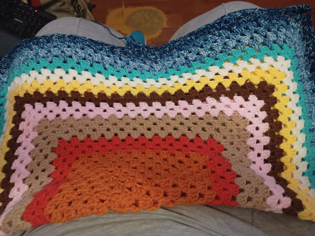 Today I only crocheted, I would like to have this lap blanket done by the end of Saturday, but hoo boy is my right shoulder blade area hurting! Still I think I am maybe halfway through the ball of yarn (if not slightly more) and I have decided that yes, this one ball of yarn will finish the square off nicely.