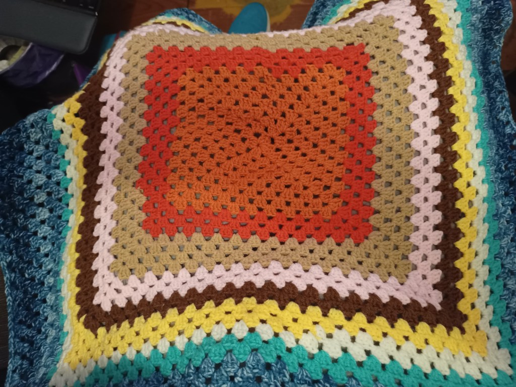Okay having spent a couple of afternoon/evenings just working on the Granny Square lap blanket I finished it last night!